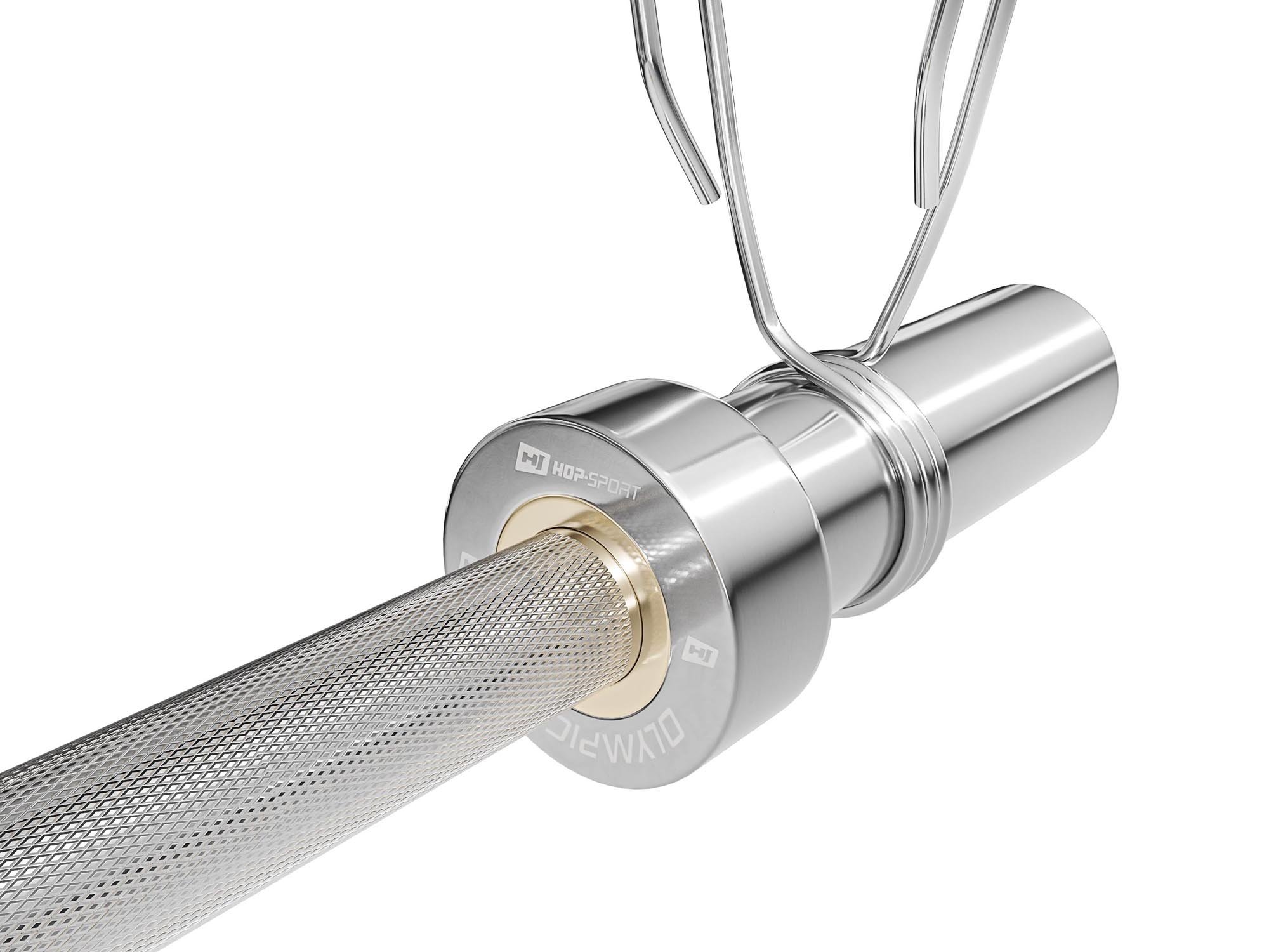 Hop-Sport Olympic Straight Barbell 120 cm / 50 mm – Chrome-Plated Steel Bar with Rotating Sleeves and Spring Collars – 320 kg Load Capacity