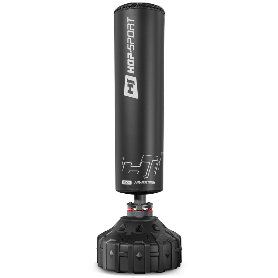 The Hop-Sport free-standing punching bag is a great alternative to a traditional hanging bag, as it does not require ceiling mounting. It can be used not only for improving martial arts techniques but also as a form of strength training focused on building power and muscle definition. The punching bag, with a height of 180 cm and a diameter of 32 cm, features an innovative anti-shock system based on 4 springs with bumpers, which reduce vibrations and oscillations during training.