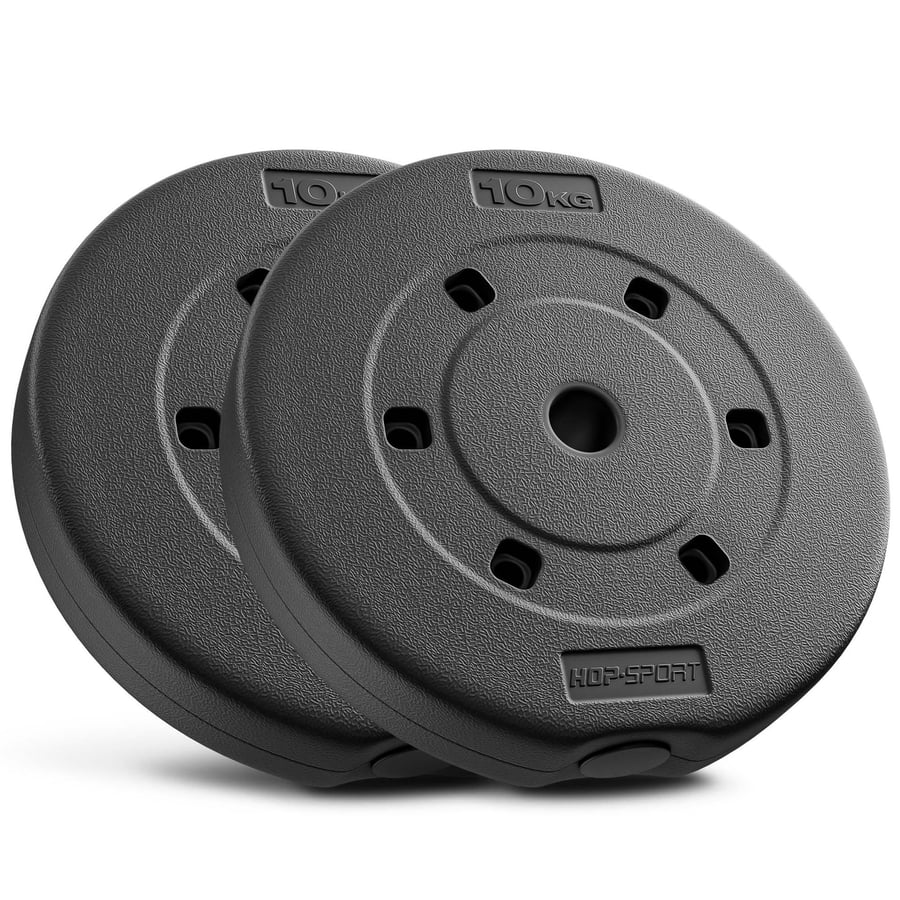 The Hop-Sport 20 kg Composite Weight Plate Set (2×10 kg) is designed for effective and versatile home strength training. Made with a durable composite shell and filled with a hardened sand-cement mixture, the plates are built for long-lasting use while being gentler on floors than cast iron. Each plate features a 28 mm hole, making them compatible with all standard 25–28 mm barbells and dumbbell bars. Perfect for a wide range of exercises, from squats and deadlifts to curls and presses, this set offers progressive resistance for both beginners and advanced users. Quiet, safe, and practical, it’s an excellent addition to any home gym.