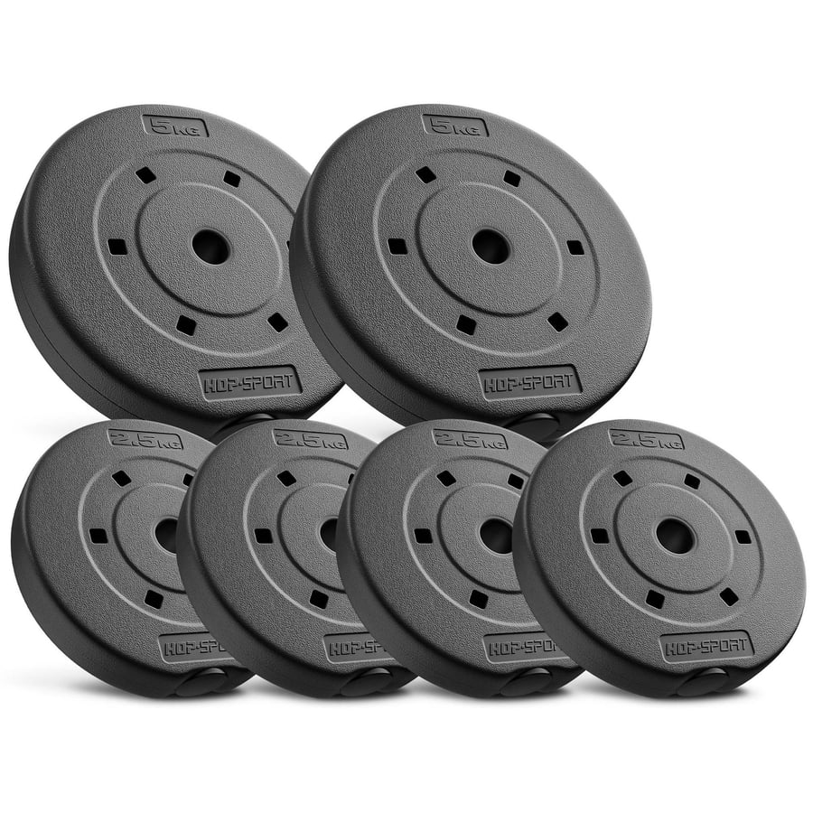 The Hop-Sport 20 kg Composite Weight Plate Set (4×2.5 kg, 2×5 kg) offers a versatile and durable solution for home strength training. With a total weight of 20 kg, the set includes 4×2.5 kg and 2×5 kg plates, ideal for progressive resistance and a variety of exercises.