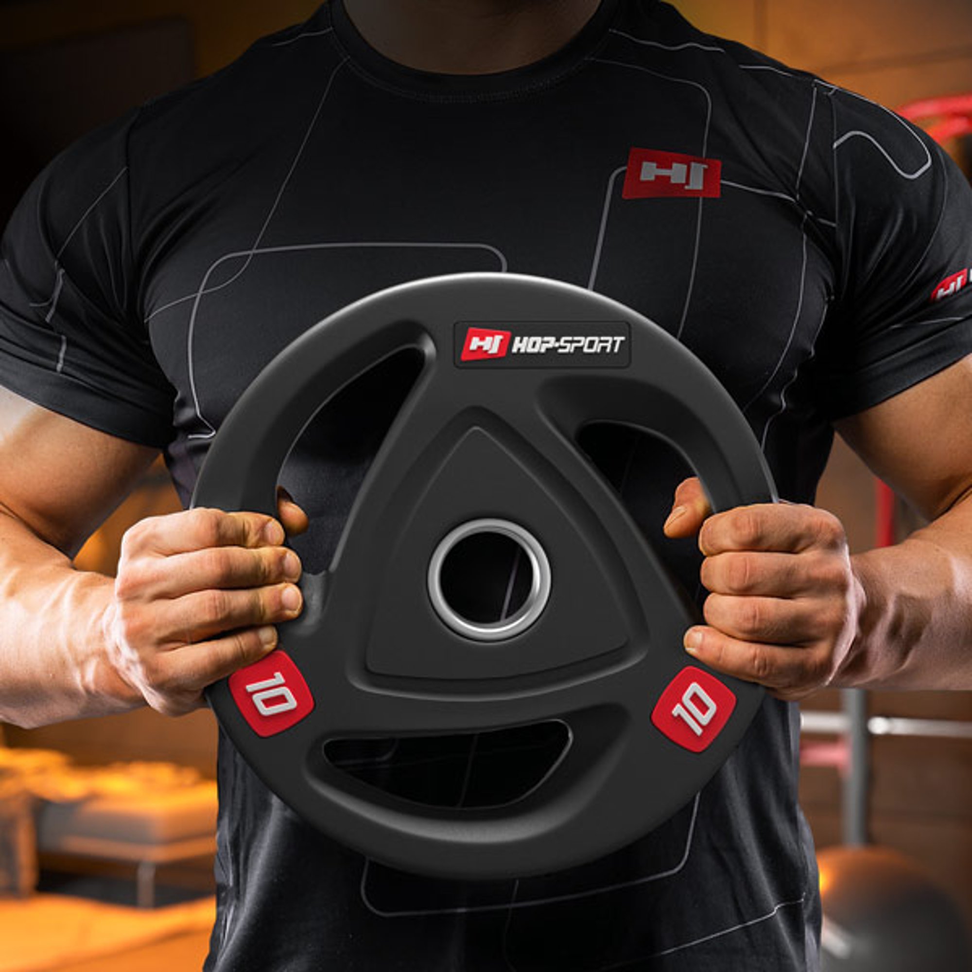 Olympic weight plates are equipped with practical grip handles that make it easy to carry and load them onto a barbell. But that’s not all—they can also double as alternative training tools. Lighter weights (1.25 kg, 2.5 kg, and 5 kg) can be used like dumbbells for exercises such as flys, lateral raises, or presses. Heavier plates (10–25 kg) serve as a great substitute for kettlebells, allowing for a more versatile and functional workout.