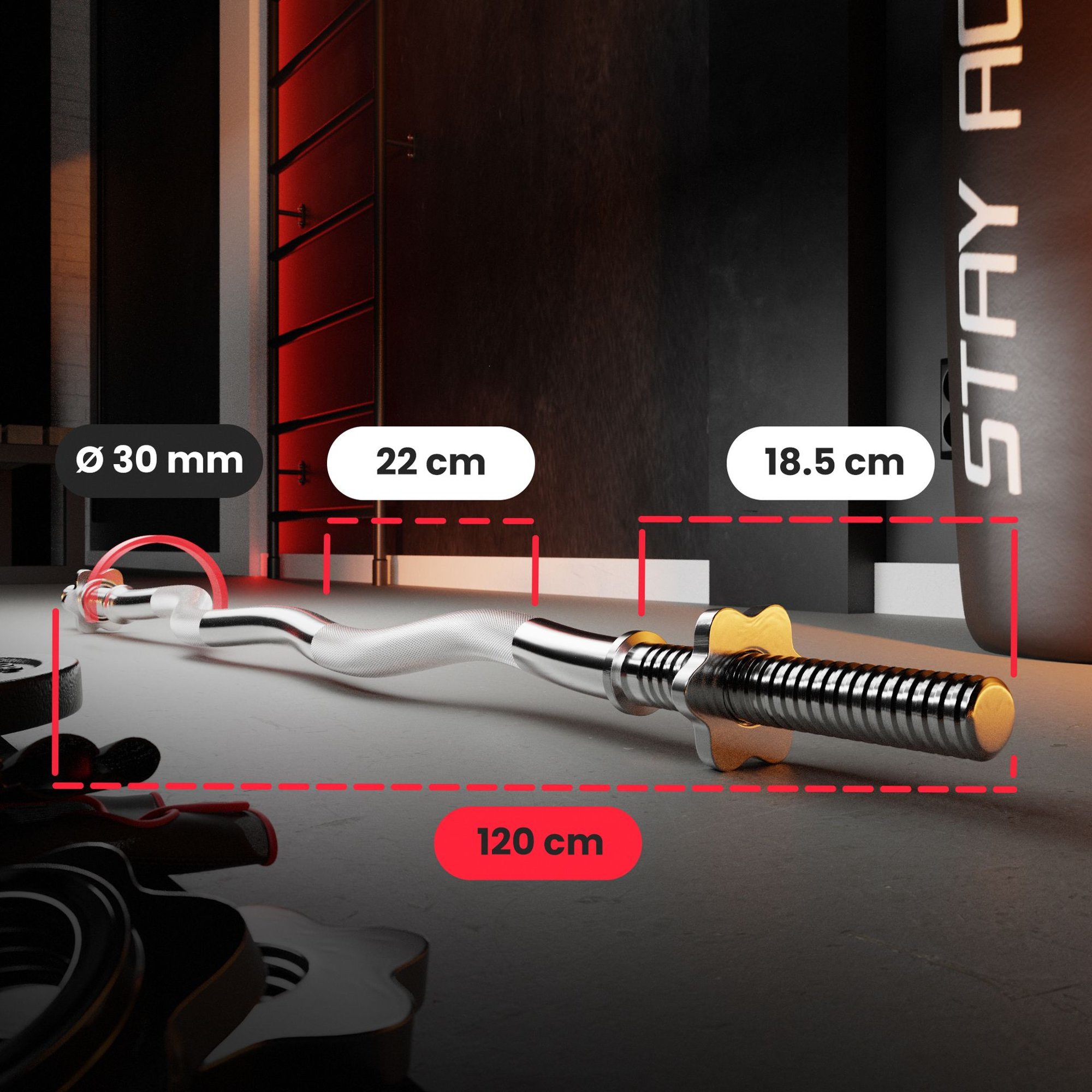 The shorter, manoeuvrable length makes the bar perfect for limited workout areas, allowing smooth transitions between exercises and comfortable handling even in tight rooms. Its size also makes it simple to store behind furniture, in closets or in compact home gym setups, while still offering excellent training versatility for arms and upper body sessions.