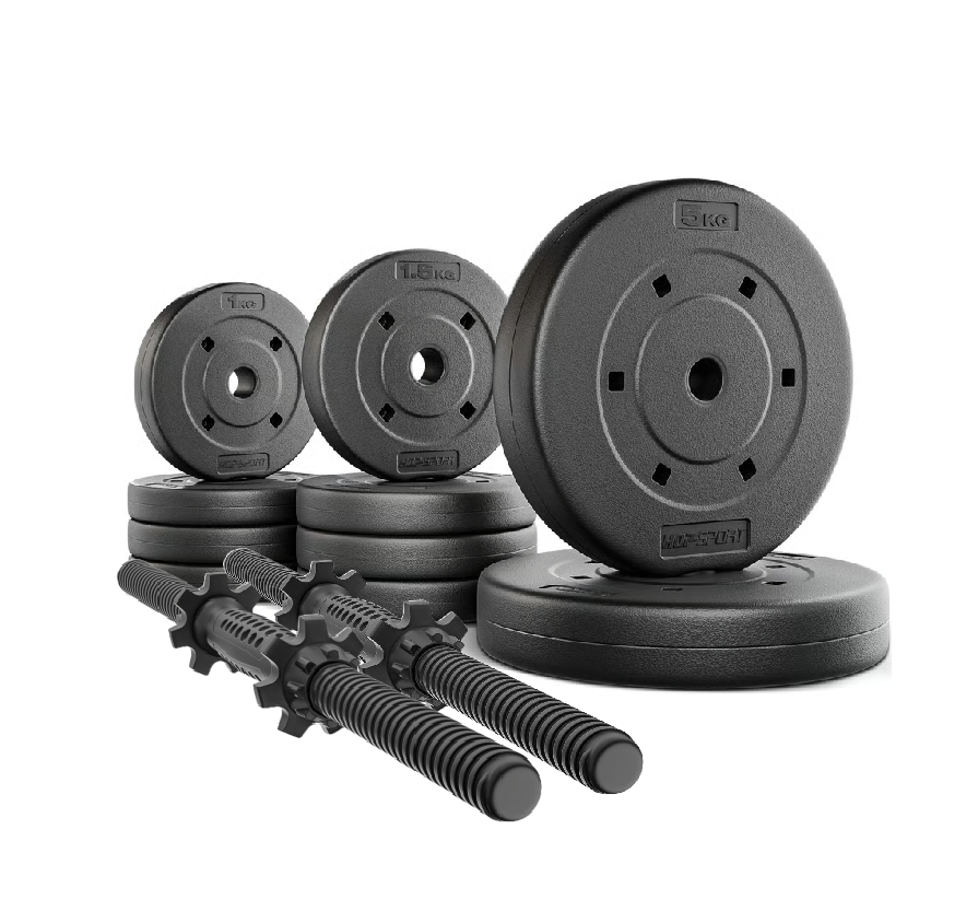 The Hop-Sport Compact Twin Barbell Kit 20 kg is a beginner-friendly, space-saving solution for strength training at home. It includes two 54 cm short bars (25 mm diameter), 2×5 kg, 4×1.25 kg, 4×1 kg plates, and secure spinlock collars. With durable construction, quiet use, and versatile exercise options, this compact set is perfect for small home gyms or apartments.