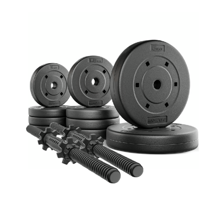 With a variety of included plates, this set is perfect for customisable resistance workouts. Use it for bicep curls, triceps extensions, chest presses, bent-over rows, or shoulder training. The combination of bars and plates allows you to target the arms, chest, back, and shoulders, giving you a complete beginner’s workout solution that promotes strength, endurance, and muscle tone.