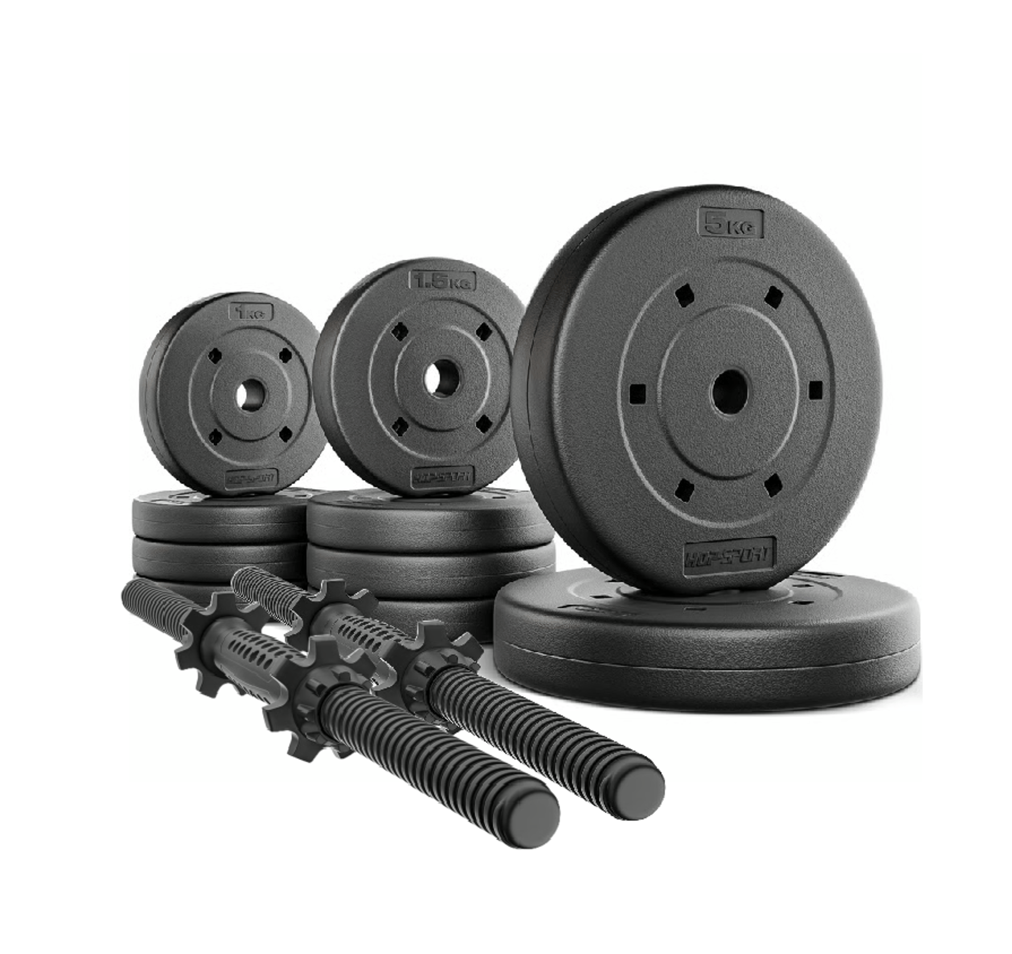 This kit includes 2×54 cm short barbell bars (25 mm diameter), 2×5 kg, 4×1.25 kg, and 4×1 kg plates, plus secure spinlock collars. With a total of 20 kg, it’s designed for beginners and home gym users who want a safe, effective introduction to strength training. Compact, practical, and versatile, it provides everything you need for daily workouts without requiring large, professional equipment.