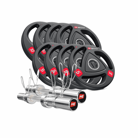 The Hop-Sport Olympic Strength Barbell Set 60 kg is a high-quality professional set that includes rubber-coated weight plates and two chrome-plated short straight barbells.