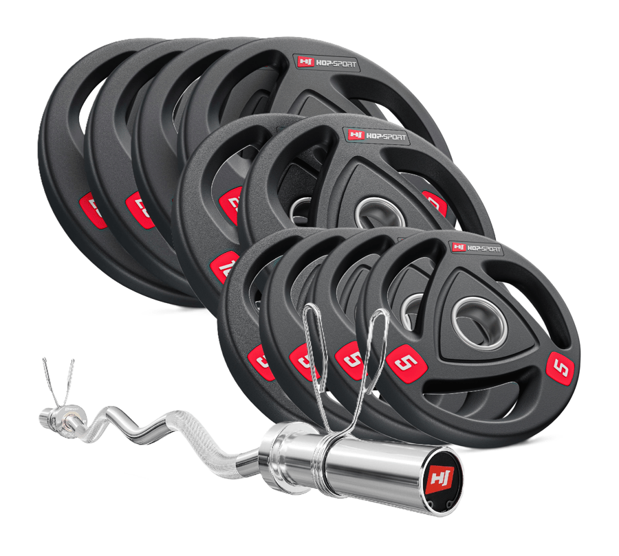 The Hop-Sport 140 kg Elite Olympic EZ Curl Barbell Set is the heaviest in the EZ Curl series, designed for advanced lifters and professional athletes. The set includes a 120 cm Olympic EZ Curl Bar with 50 mm rotating sleeves and 10 Olympic weight plates: 4×20 kg, 2×10 kg, 4×5 kg. With a total weight of 140 kg, it offers everything needed for high-performance training.