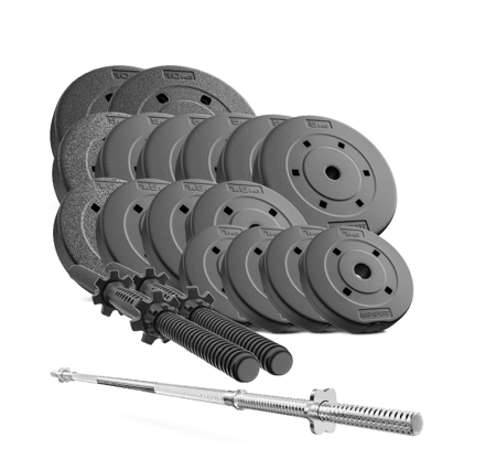 With the additional 10 kg plates, this 60 kg set offers greater training versatility and enables progressive resistance, the key principle for building muscle and strength. Start light to perfect your form and gradually increase the weight as your performance improves. This flexibility makes it ideal for powerlifters, bodybuilders, and fitness enthusiasts looking to take their training to the next level. The even weight distribution ensures smooth motion and joint-friendly training, even with heavy loads.