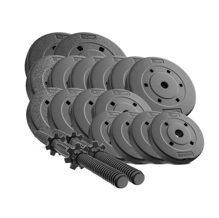 The set includes reliable spinlock collars with a double-locking system, ensuring that the weight plates stay securely in place during every exercise. These collars eliminate unwanted plate movement and rattling, allowing for stable, controlled performance even under heavy load. Whether performing shoulder presses, curls, or triceps extensions, you can focus entirely on form and strength without worrying about slippage. Easy to tighten and remove, the spinlocks add both safety and convenience to your workout.